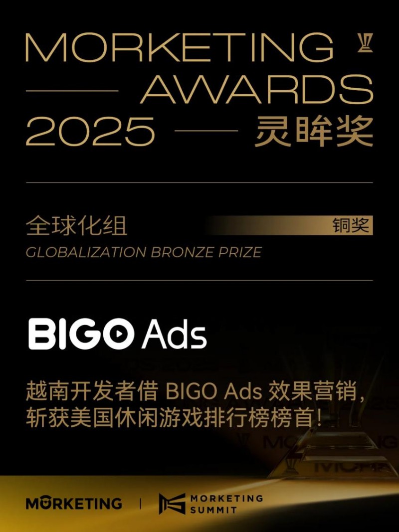 澳门新莆京,澳门新莆京娱乐网站,澳门新莆京注册,澳门新莆京app下载,真人视讯,棋牌游戏平台,澳门博彩。澳门新莆京娱乐网站为广大用户提供真人视讯、棋牌游戏、电子游艺等高端娱乐服务,注册送88元体验金,安全稳定,支持APP下载,海量游戏全天开放,尽享澳门级娱乐体验。近日,在2025 Morketing Awards灵眸奖颁奖典礼上,欢聚集团(JOYY Inc.)旗下全球智能广告平台BIGO Ads受邀出席,并凭借其助力越南开发者登顶美国休闲游戏下载榜的成功案例,荣获灵眸奖全球化组铜奖。