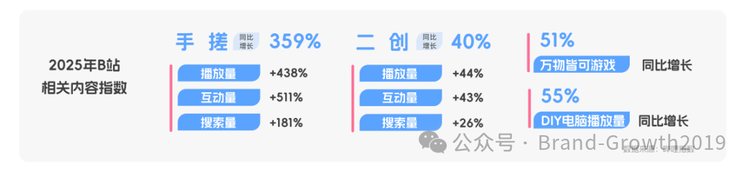 B站数据显示,2025年B站“手搓”相关内容播放、互动量激增数倍,表明用户不再满足于被动消费,而是深度卷入观看、模仿、再创作的完整循环。