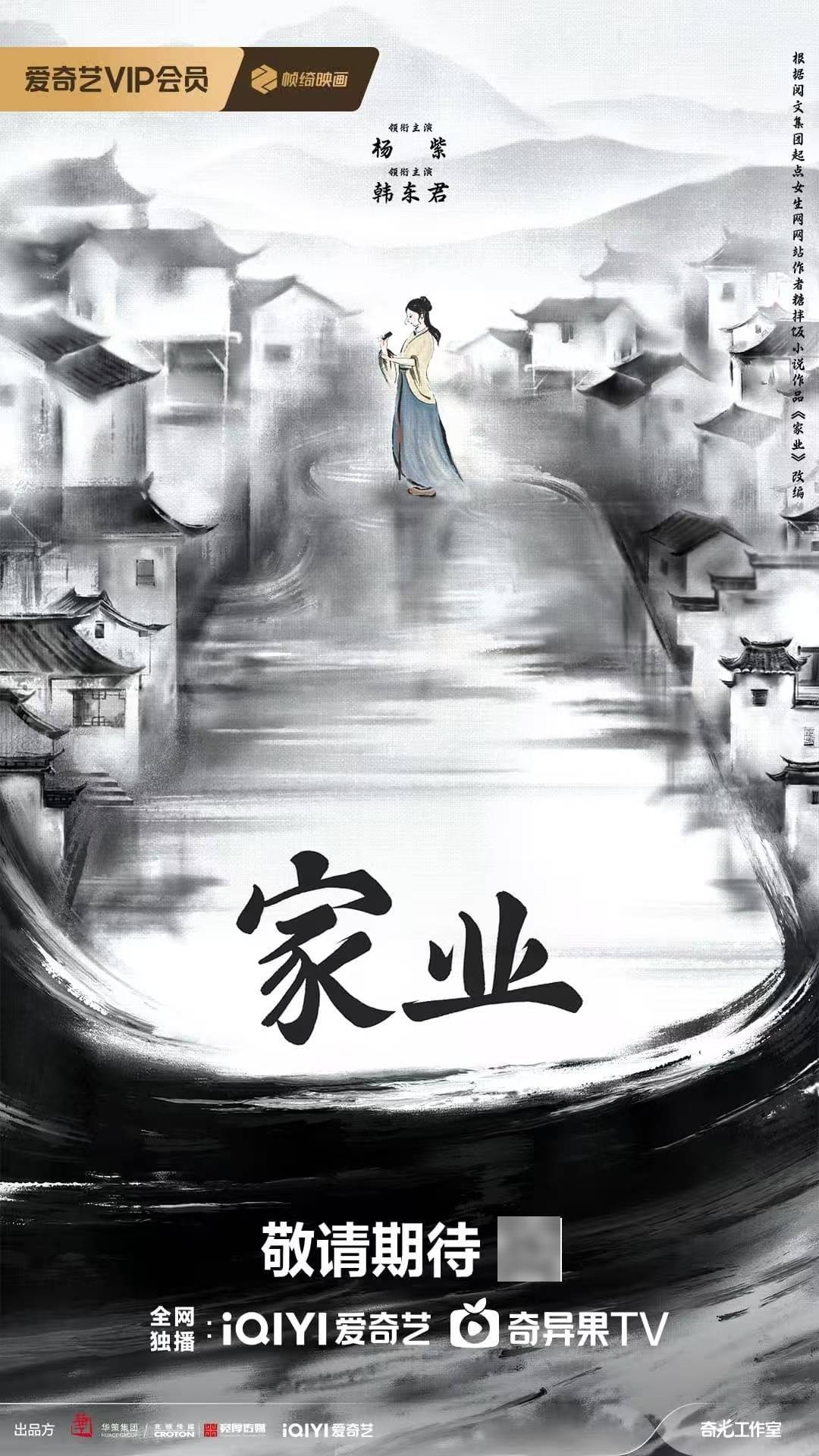 由杨紫、韩东君领衔主演的首部徽墨文化大剧《家业》以明朝徽州为时空坐标,以中华瑰宝“徽墨”为故事载体,以大开大合的叙事笔触串联三大墨业家族兴衰沉浮,讲述出身名门却流落城门洞的李祯(杨紫 饰)以墨为刃,重塑徽州墨业辉煌、复兴百年家族、再造千年徽墨光彩的传奇故事。该剧预计将在2026年播出。