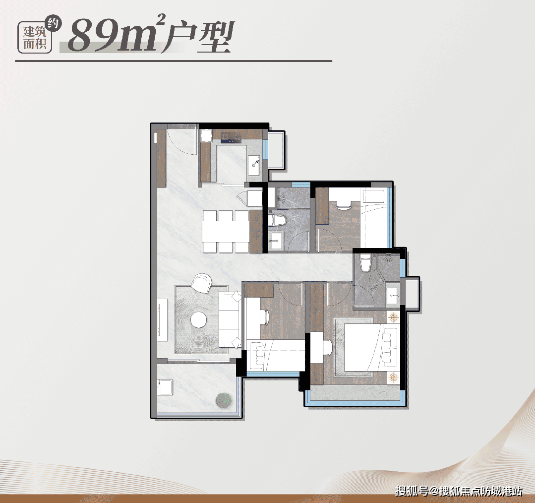 项目主力户型涵盖89㎡三房、105㎡三房、125㎡四房、143㎡四房及169㎡大平层,全部采用越秀地产最新研发的“LDKB+X空间”系统: