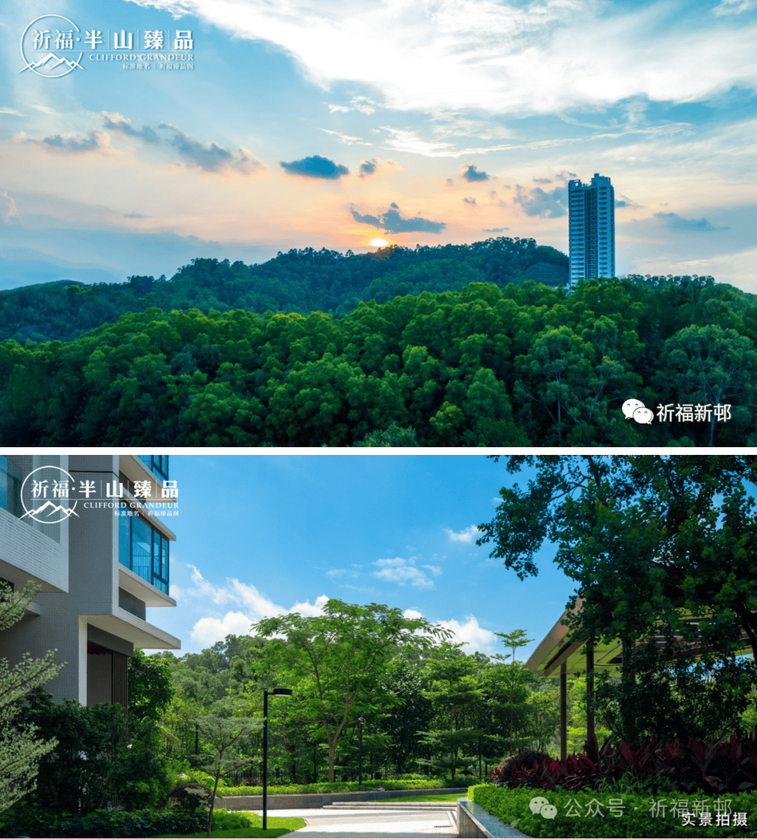 【祈福半山臻品】位于祈福新邨内,是祈福新邨最后住宅组团,由3栋楼组成,栋栋间距开阔近百米,视野无遮无挡!半山之上,推窗见林,环境优美,鲜氧环绕;南瞰9000亩大夫山多重山脉,尽揽600亩祈福湖、祈福大城风光+广州繁华都市!