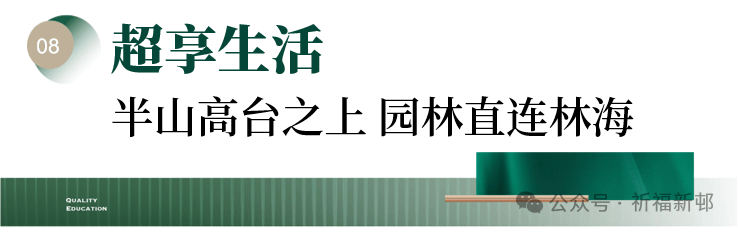 【祈福半山臻品】高台新园,半山之上,有十几米高差。半山水景园林直连原生林海,三栋现代俊朗的建筑巍然矗立,园林与林海无缝连接,实现真正的“零距离”。